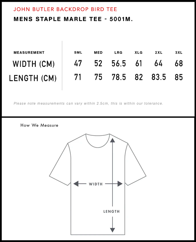 The t-shirts will be printed on the AS Colour 5001 Staple Tee.